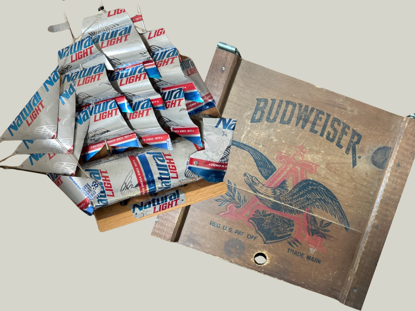 Lot # 115 - Vintage Budweiser Wooden Crate & Beer Can Ship Memorabilia Starting Bid: $ 5.00 Bids: This sale will end in: |