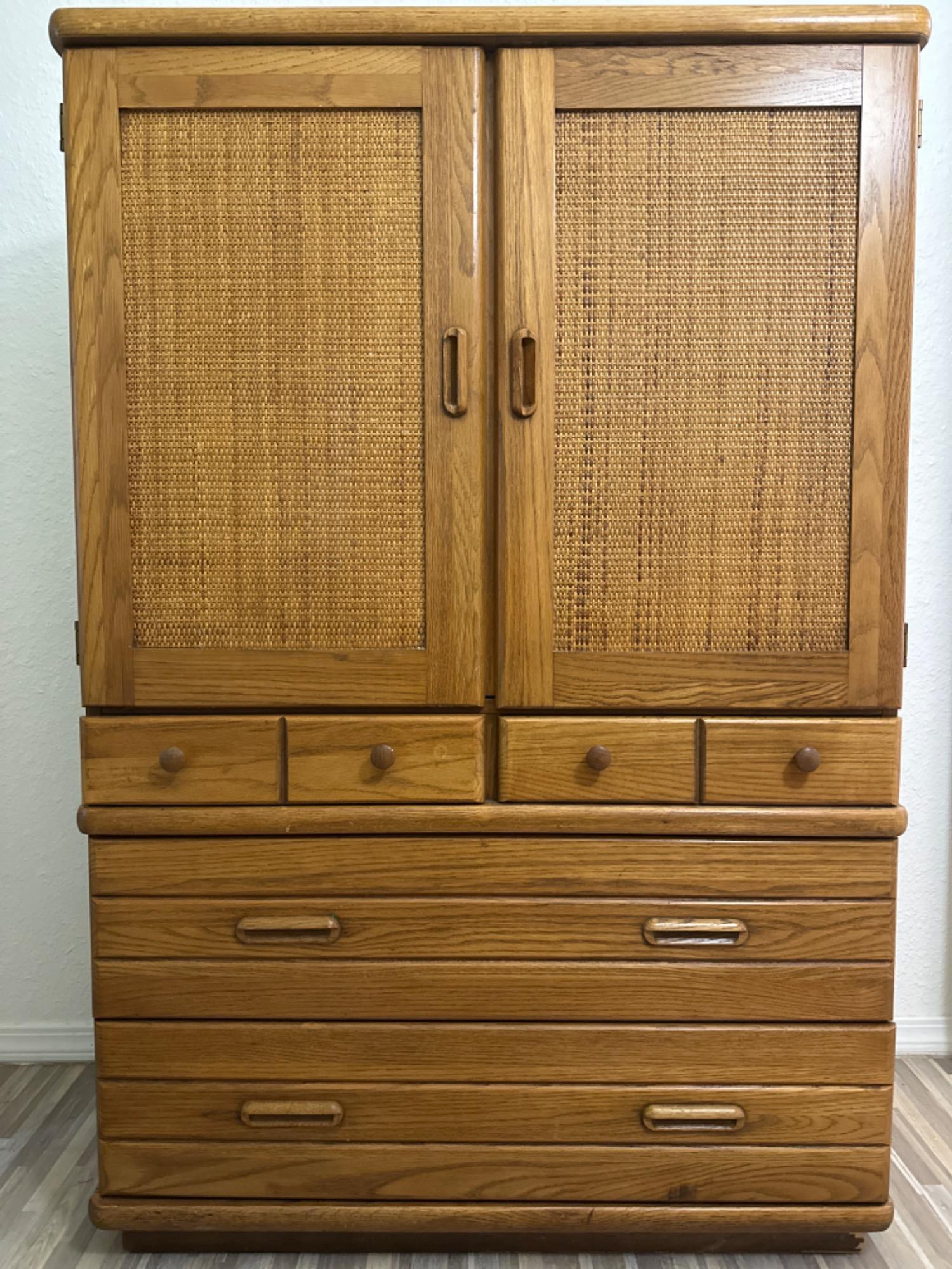 Lot # 120 - Vintage Broyhill Premier Oak Dresser with Caning Starting Bid: $ 5.00 Bids: This sale will end in: |