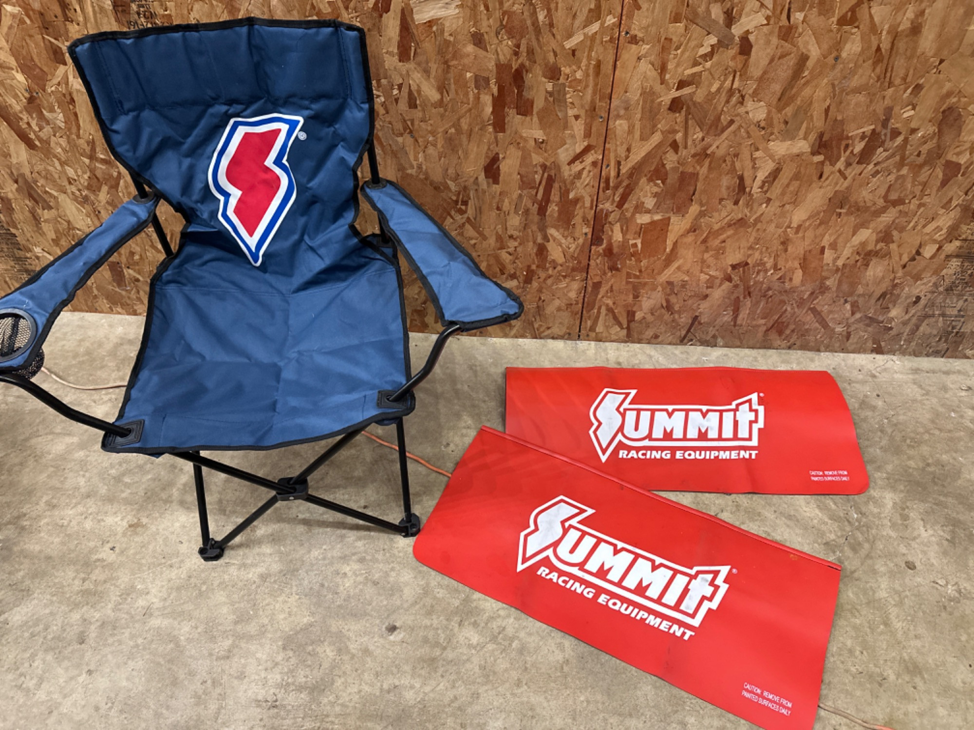 Lot # 148 - Summit Racing Fender Mats & Chair Starting Bid: $ 5.00 Bids: This sale will end in: |