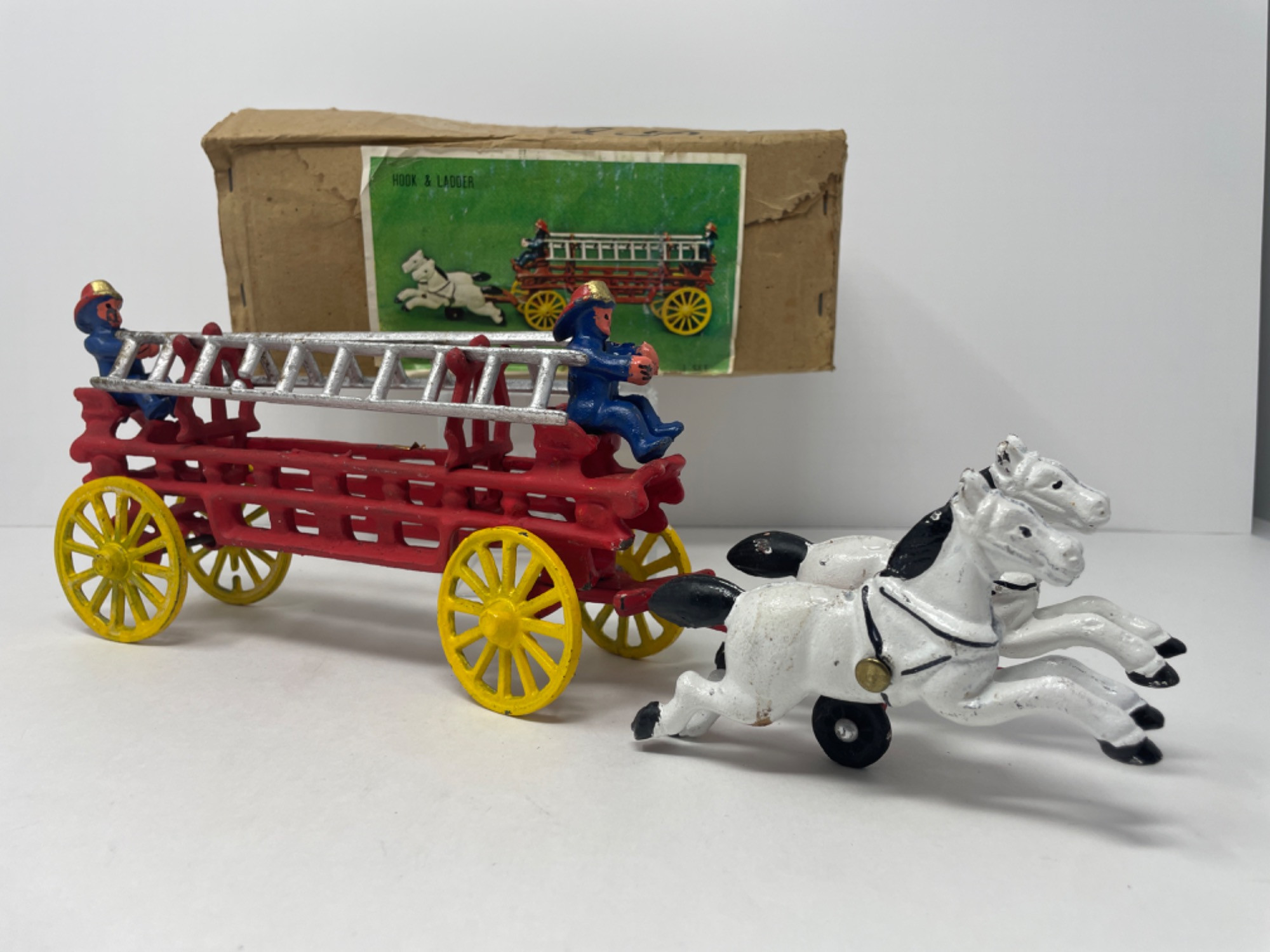 Lot # 146 - Antique Cast Iron Horse Drawn 2 Ladder Fire Wagon Starting Bid: $ 5.00 Bids: This sale will end in: |