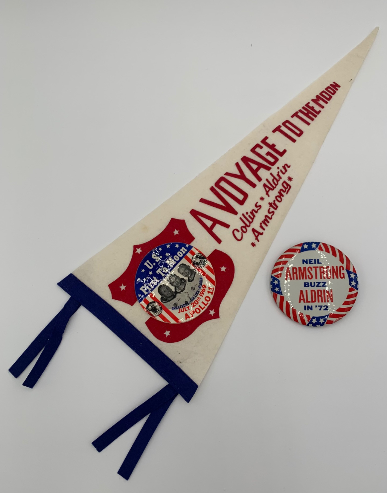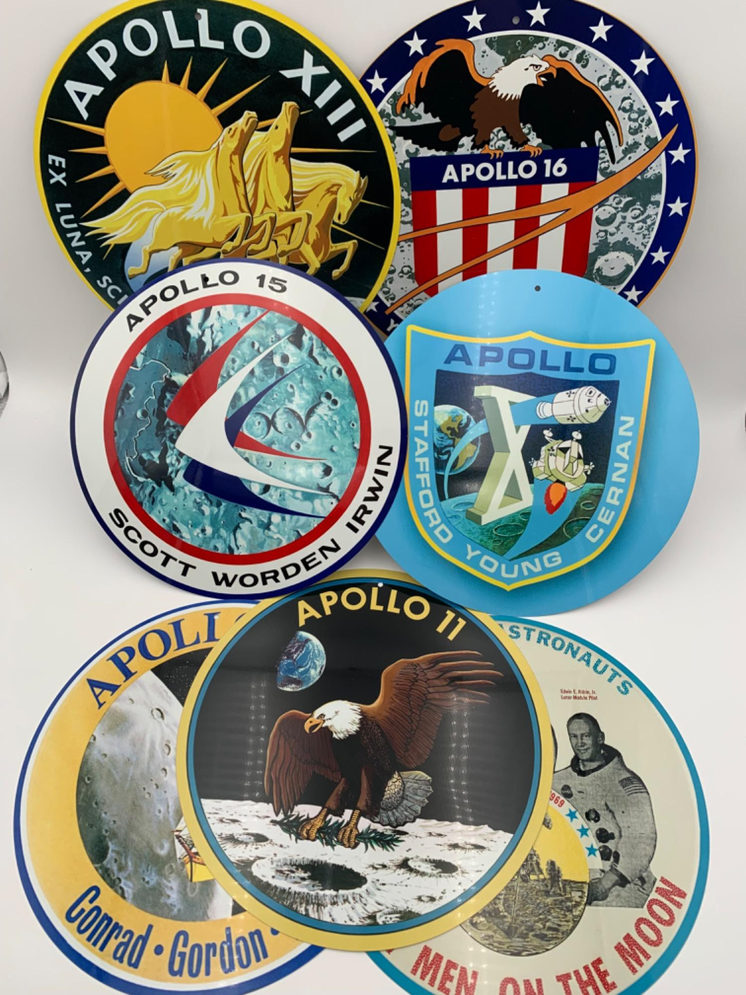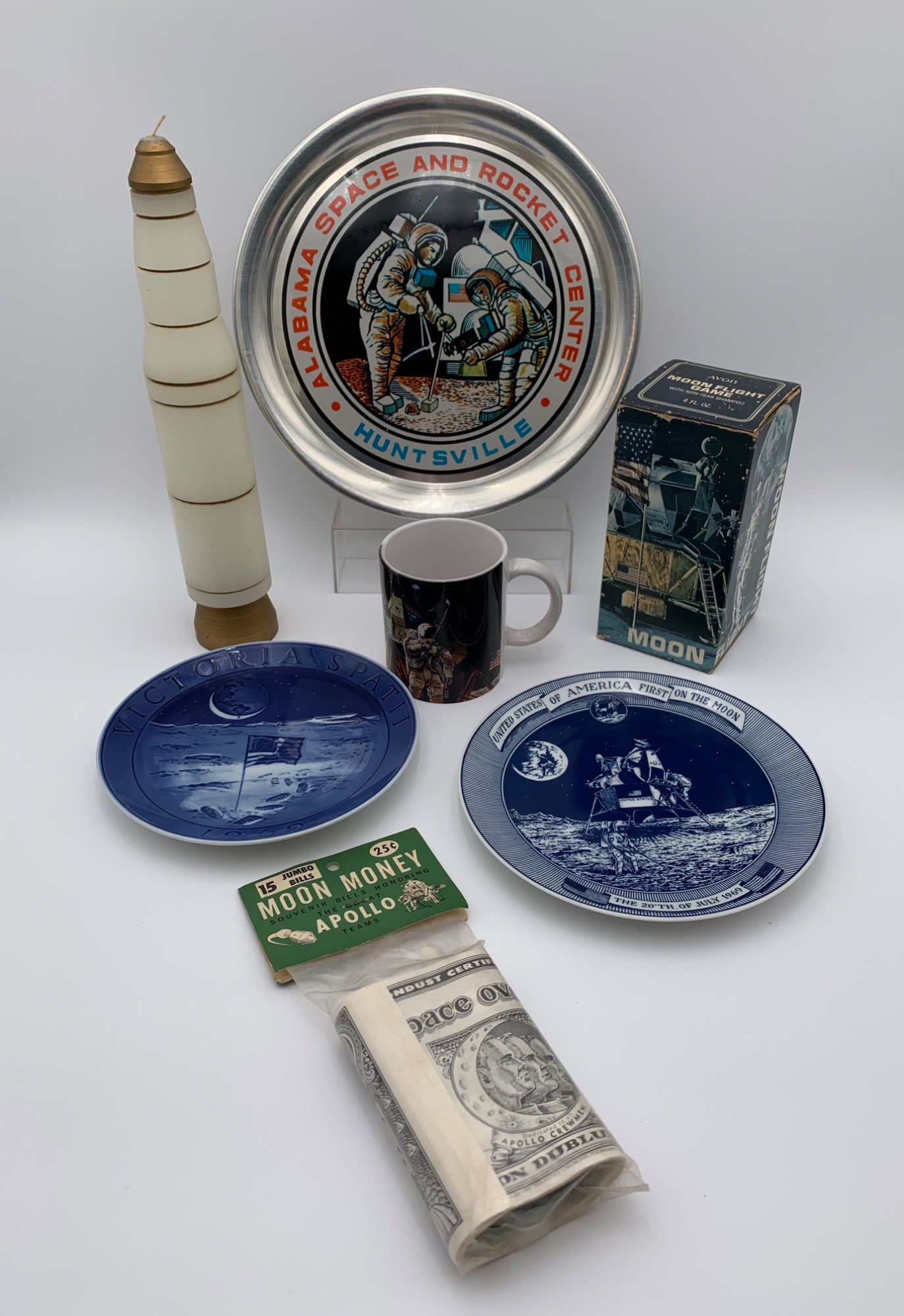 MOON MISSION MEMORABILIA: Galaxy coins, pennants, postcards, LPs, wall décor, & home goods