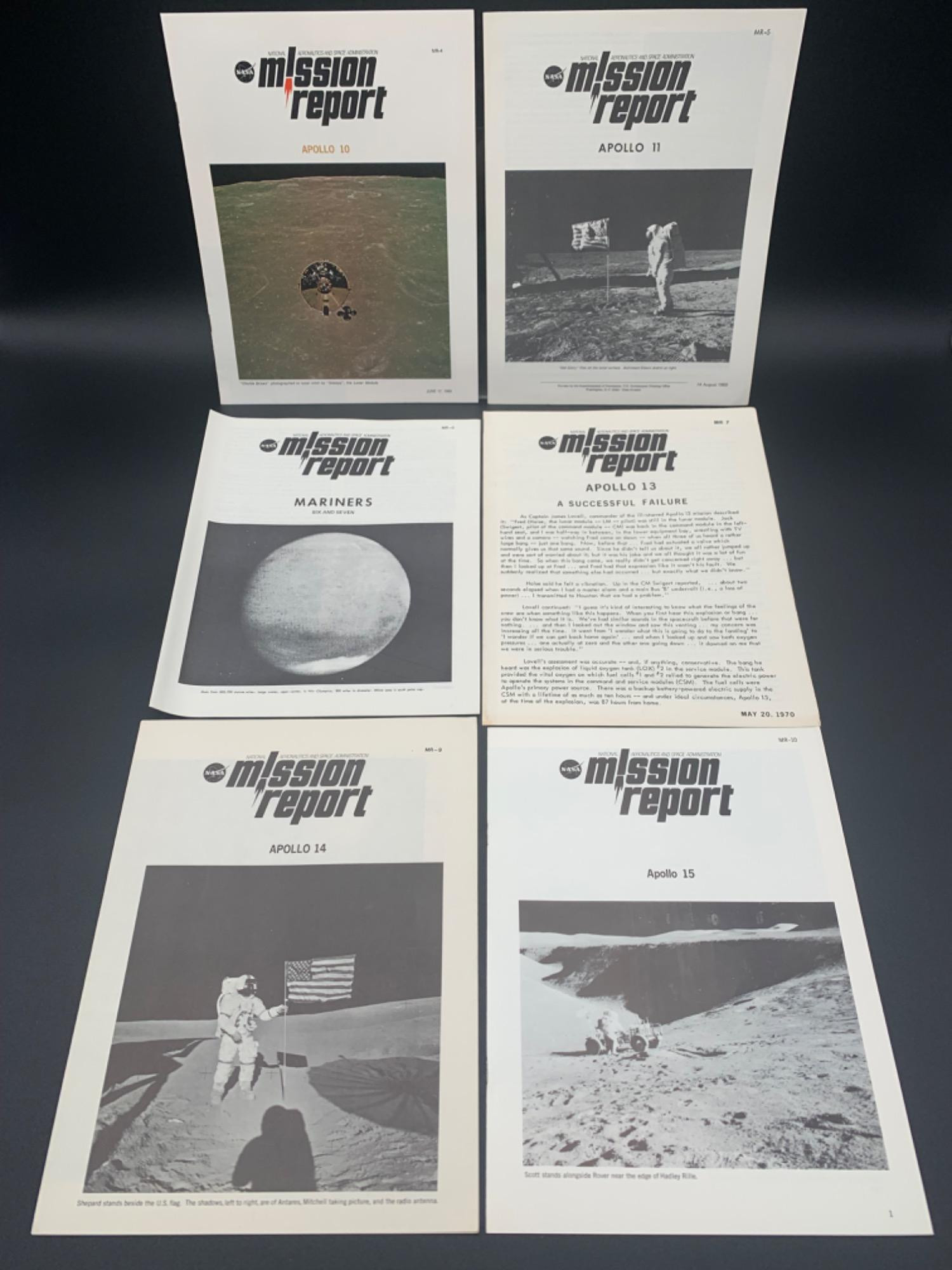 NASA PUBLICATIONS: Mission Reports, awareness brochures, histories of Gemini, Mercury, Apollo, Skylab, & Shuttle programs
