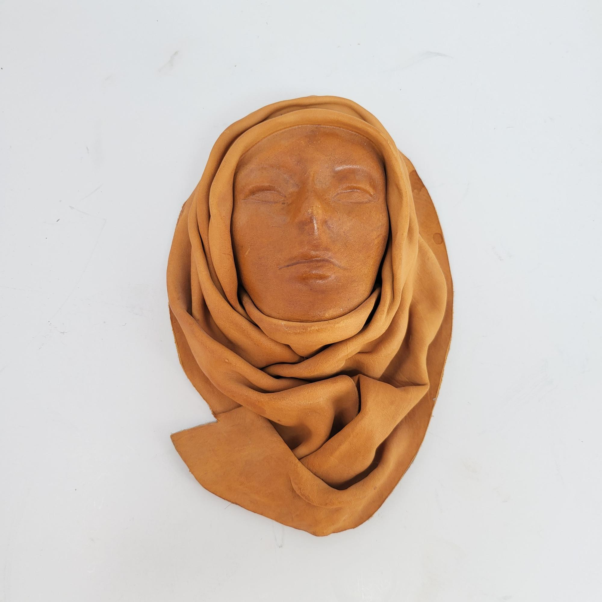 Lot # 164 - Vintage Molded Leather Woman's Face Wall Sculpture, Signed Starting Bid: $ 5.00 Bids: This sale will end in: |