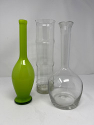 Lot # 183 - Trio Mid Century Slender Glass Vases Starting Bid: $ 5.00 Bids: This sale will end in: |