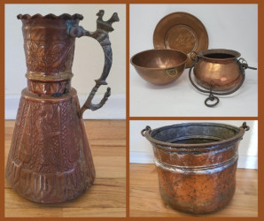 Lot # 13 - Rustic Copper Collection Kettle, Bowl & Plate + More Starting Bid: $ 5.00 Bids: This sale will end in: |