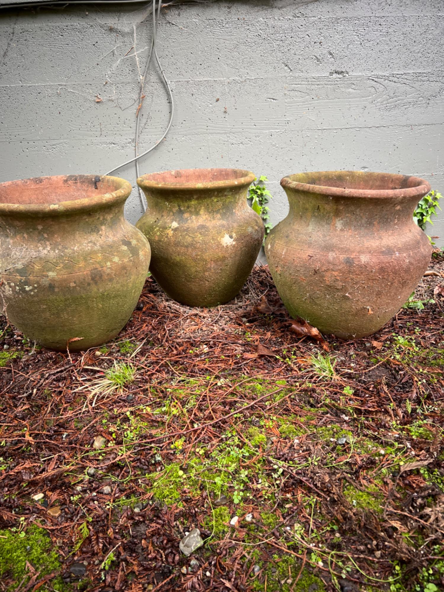 Lot # 179 - Vintage Artsy Garden Tools, Mossy Slate Slab & Planter Trio Starting Bid: $ 5.00 Bids: This sale will end in: |