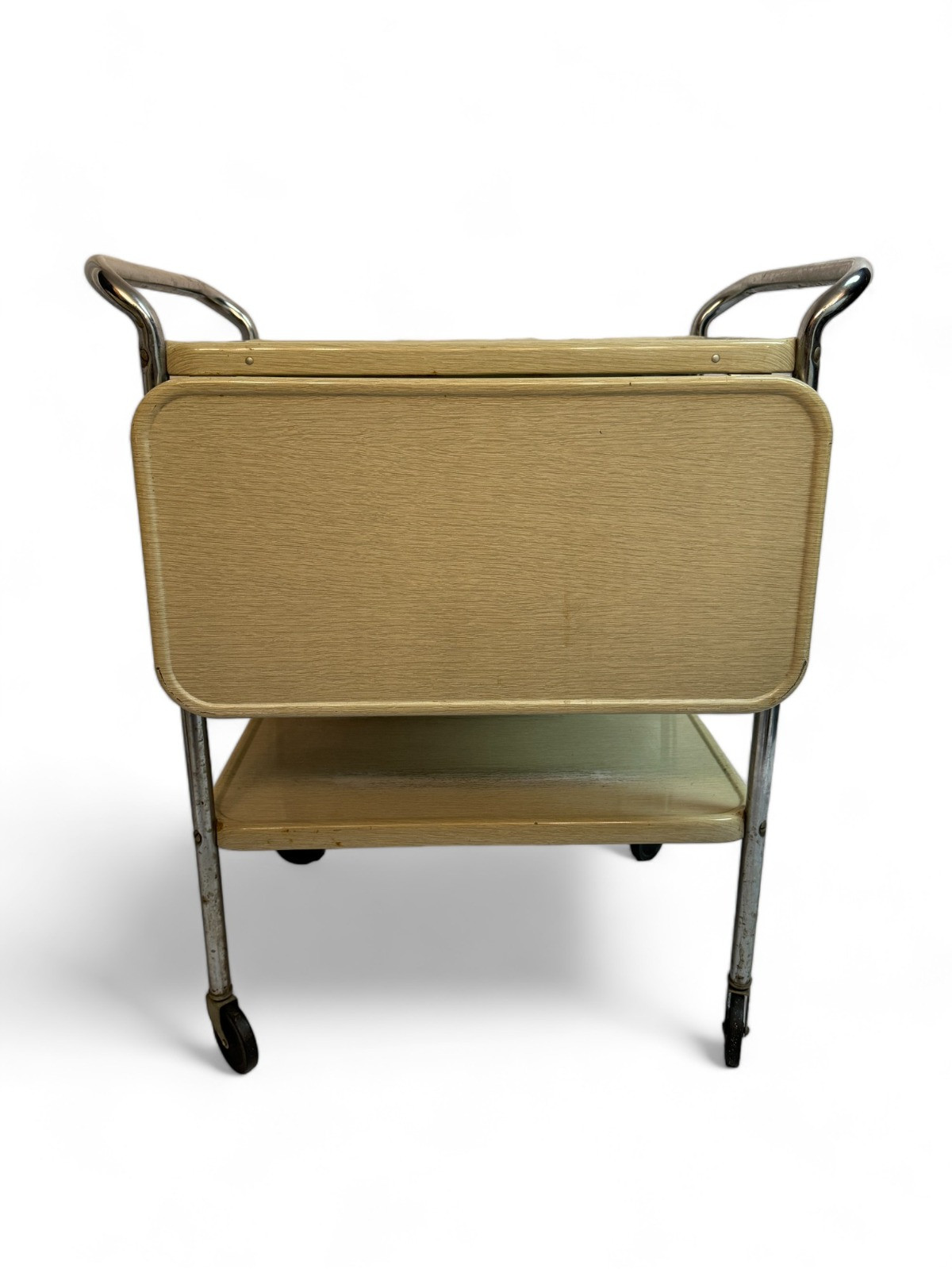 Taupe & Ivory Swivel Rocker Chair. Lane Rhythm Cube Storage Cabinet End Table. Rattan & Rawhide Bar Chairs. Aluminum & Wood Folding Patio Lawn Chairs & Bench, Tomlinson Sophisticate Drop Leaf Surfboard Buffet Cart. Karl Lindegaard Danish Teak Coffee Table. White & Chrome Foldable Trolley