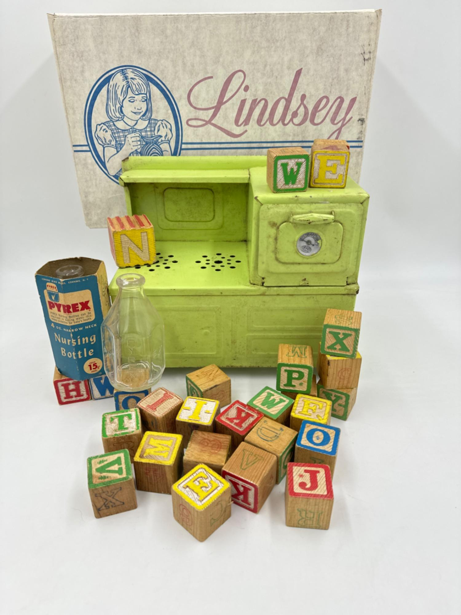 Lot # 138 - Vintage Toys: Girard Toy Stove, NIB Lindsey Mosser Glass Lemonade Set Starting Bid: $ 5.00 Bids: This sale will end in: |