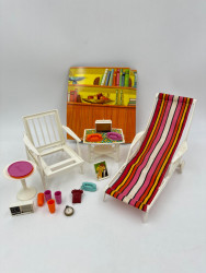 Lot # 14 - 1963 Vintage Barbie Go Together Furniture Striped Patio Set + Starting Bid: $ 5.00 Bids: This sale will end in: |
