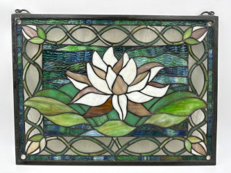 Lot # 129 - Tiffany Style Peacock Feather Stained Glass Lamp Shade - 15.25"D Starting Bid: $ 5.00 Bids: This sale will end in: |