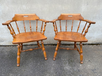 Lot # 175 - 1970s Ethan Allen Heirloom Nutmeg Maple Low Back Windsor Chairs Starting Bid: $ 5.00 Bids: This sale will end in: |