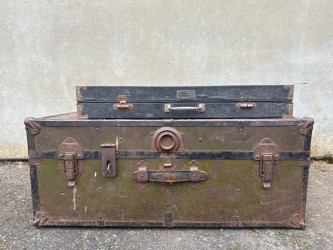 Lot # 179 - Antique Vintage Steamer Trunk + Travel Table & Chair Case Starting Bid: $ 5.00 Bids: This sale will end in: |