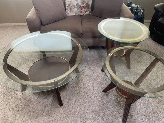 Lot # 87 - Round Beveled Glass Tables Starting Bid: $ 5.00 Bids: This sale will end in: |