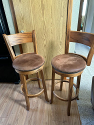 Lot # 99 - Two Bar Stools-Oak and Microfiber Seat Starting Bid: $ 5.00 Bids: This sale will end in: |
