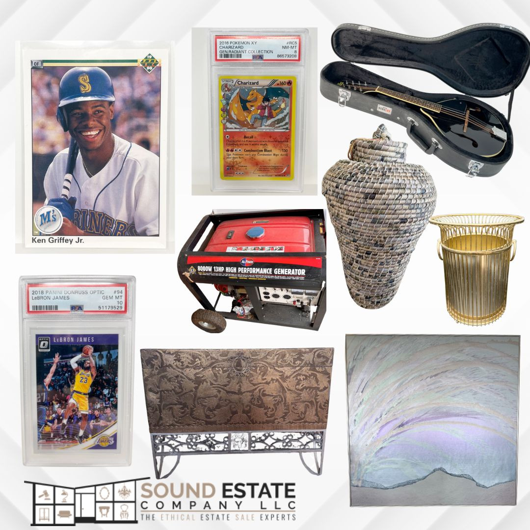 Rare trading cards, pop culture items, vintage collectibles, rare designer 80's and 90's furniture, outdoor and some one of a kind signed artwork.