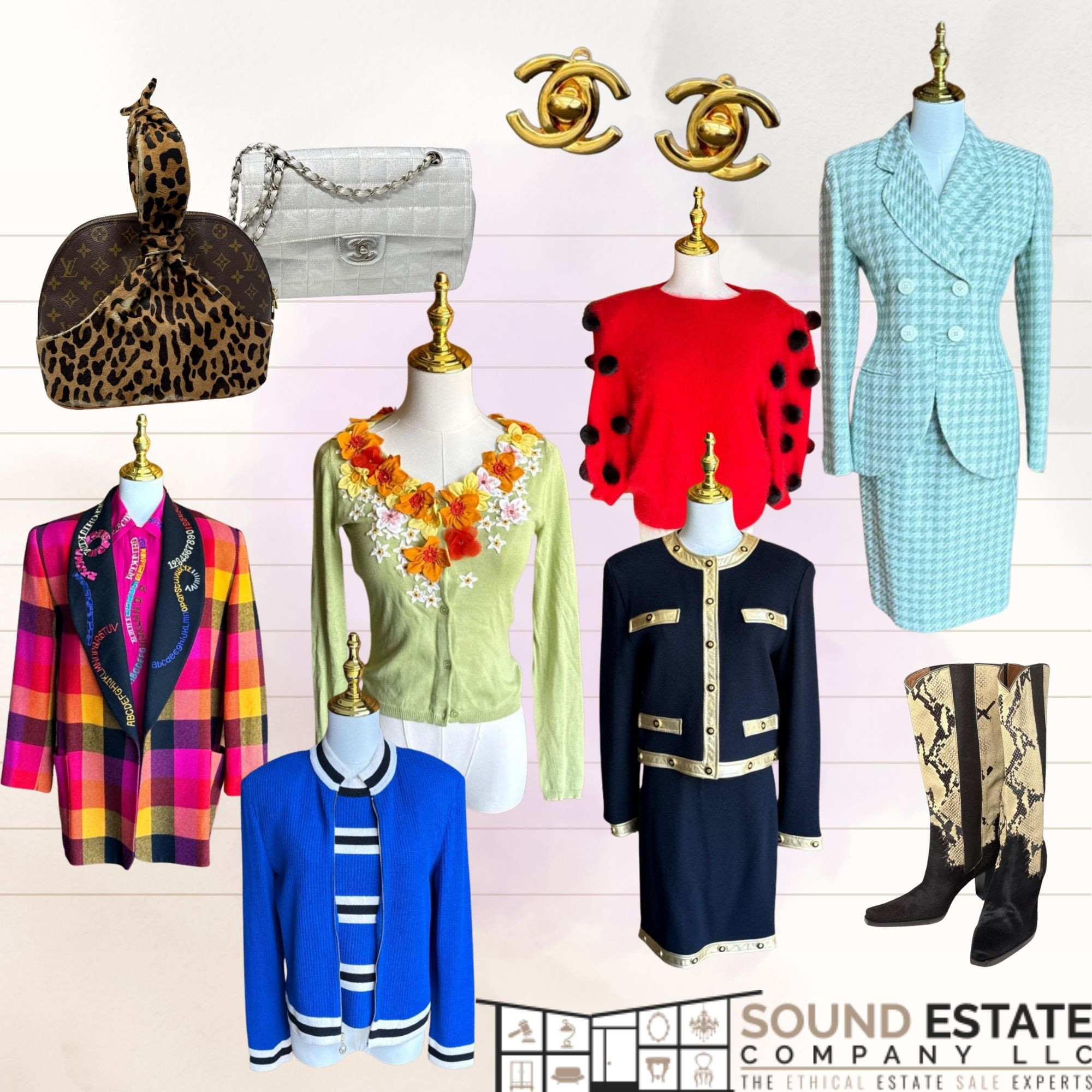 Stunning Christian Dior Skirt Suit, Chanel Handbags, Vintage Louis Vuitton Handbags, Chanel Earrings, 1980's & 1990's Vintage Statement Pieces and MANY St John Outfits and Separates.