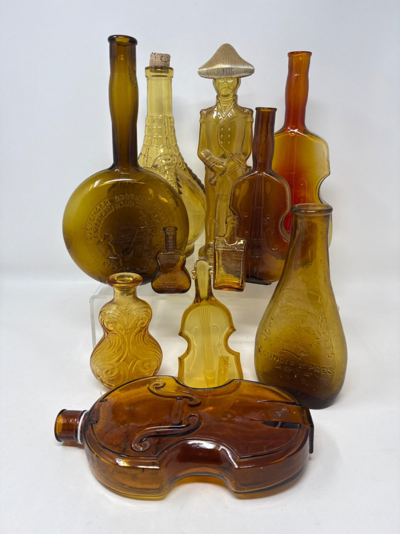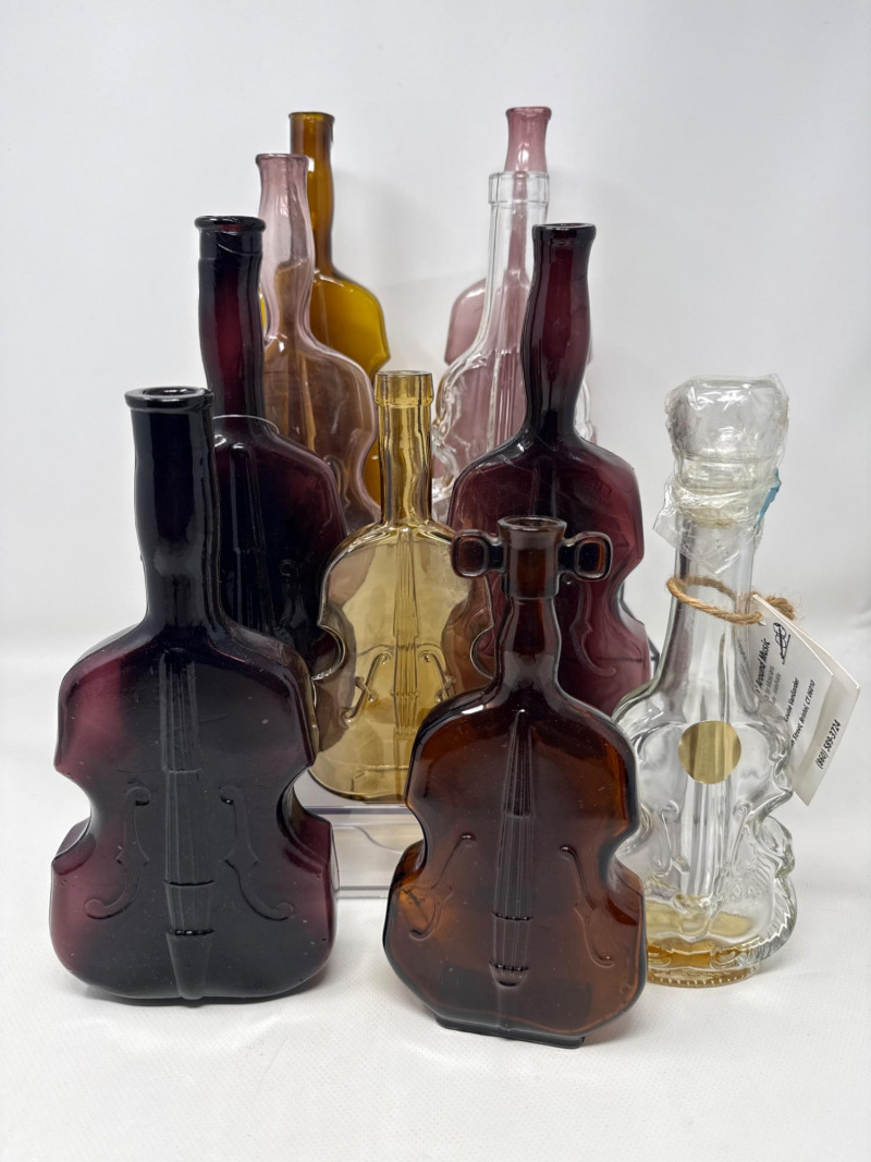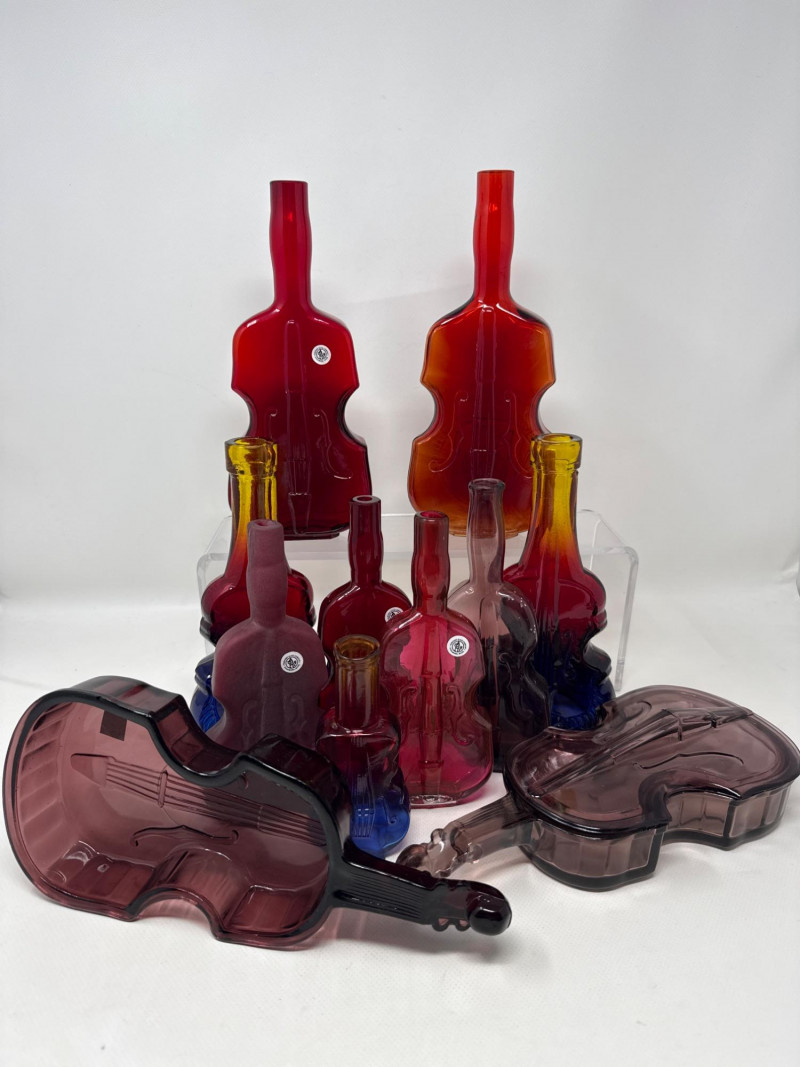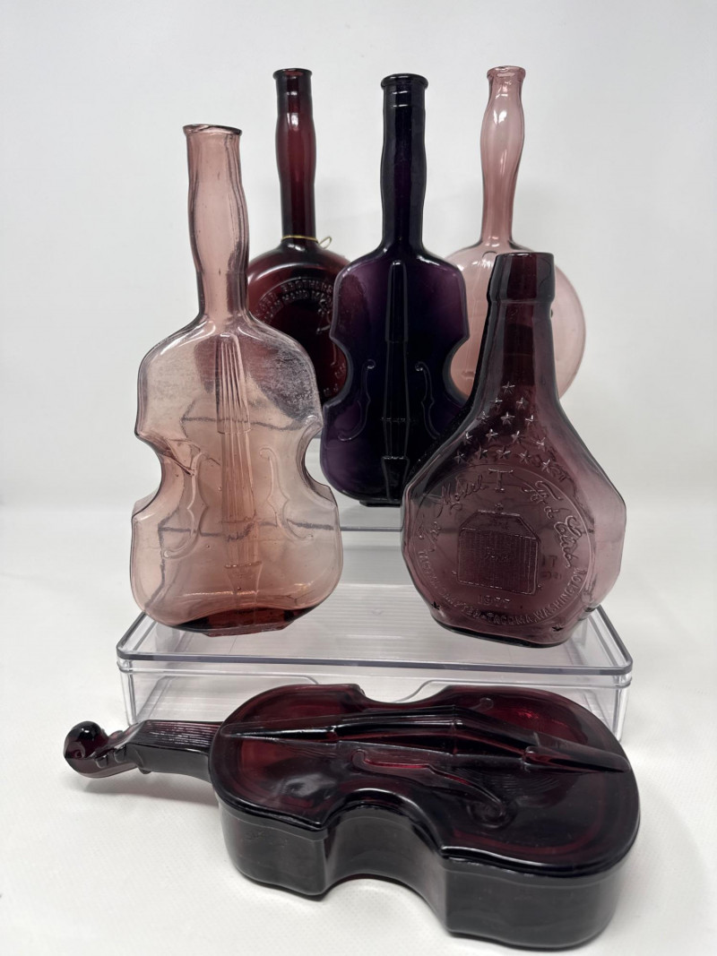Lot # 83 - Cranberry, Clear, Amber, Violet, Vintage Violin Bottles Starting Bid: $ 5.00 Bids: This sale will end in: |