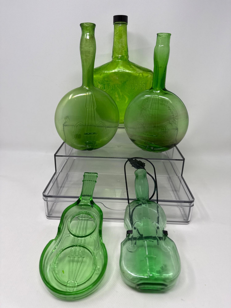 Lot # 47 - Green Envy Vintage Violin, Banjo and Rocking Chair Bottles Starting Bid: $ 5.00 Bids: This sale will end in: |