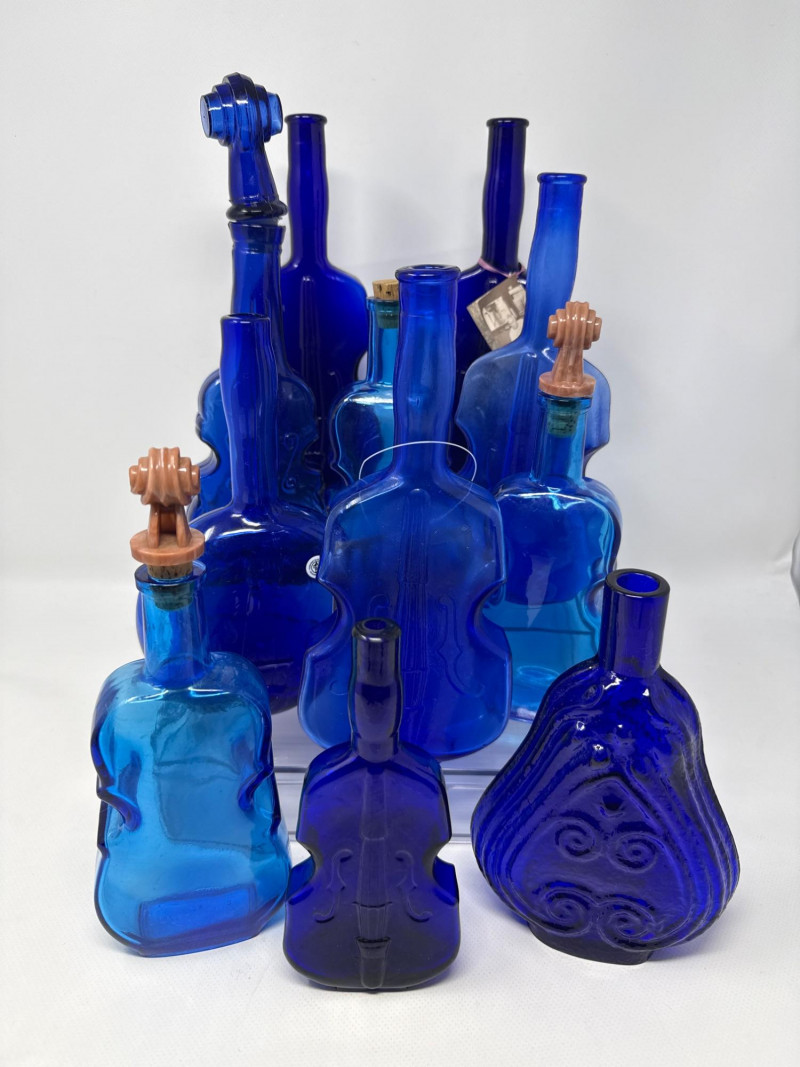 Lot # 102 - Vintage Mixed Blue and Clear Violin Bottles for S/P and Perfume Starting Bid: $ 5.00 Bids: This sale will end in: |