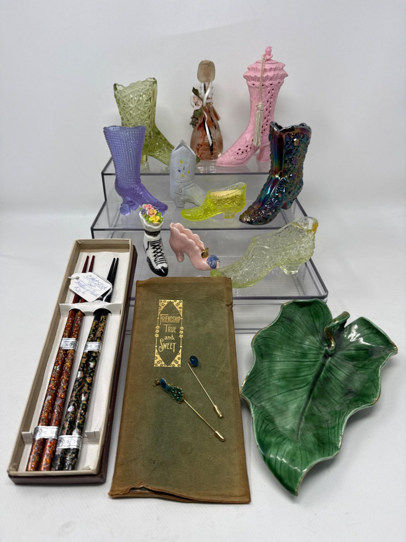 Lot # 114 - Vintage Glass Boots and Collectibles, Vaseline Glass Boot Starting Bid: $ 5.00 Bids: This sale will end in: |