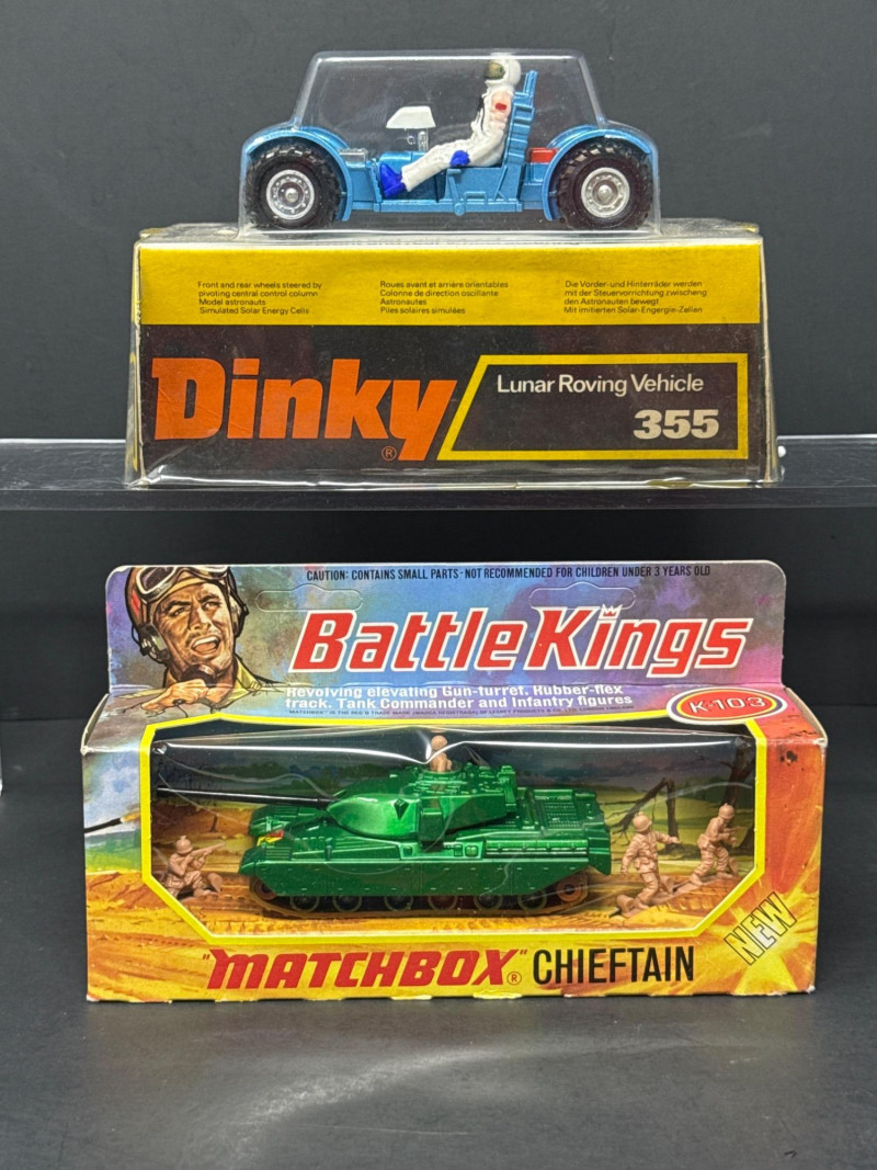 Lot # 103 - Vintage Battle Kings Chieftain Tank and Dinky Lunar Rover Vehicle 355 Starting Bid: $ 5.00 Bids: This sale will end in: |