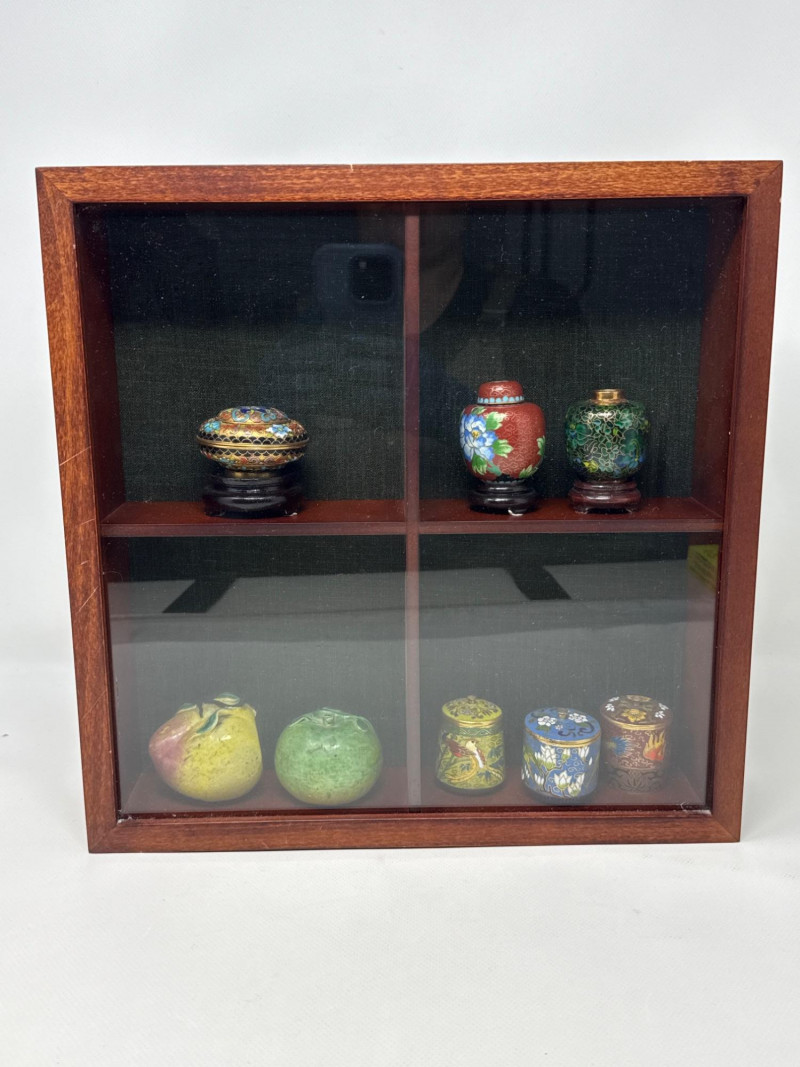 Lot # 38 - Miniature Cloisonné Jars and Display Case Starting Bid: $ 5.00 Bids: This sale will end in: |