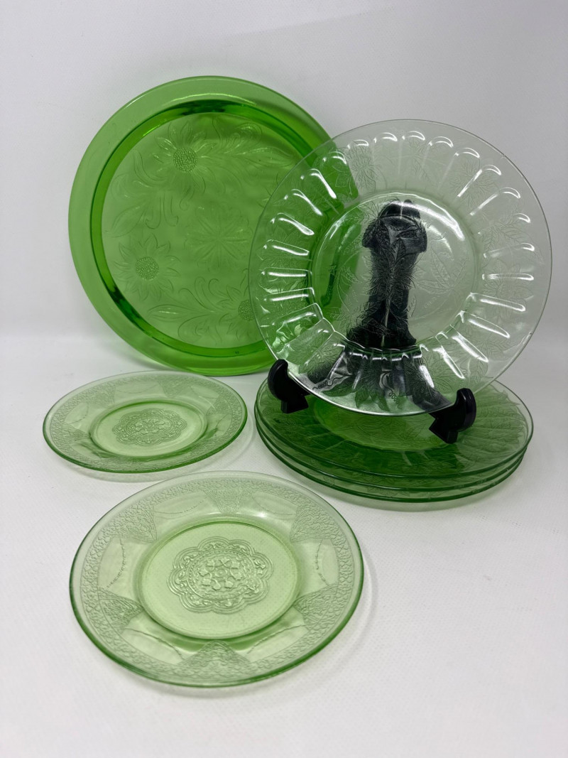 Lot # 51 - Vintage Green Uranium Depression Glass Plates and Trivet Starting Bid: $ 5.00 Bids: This sale will end in: |