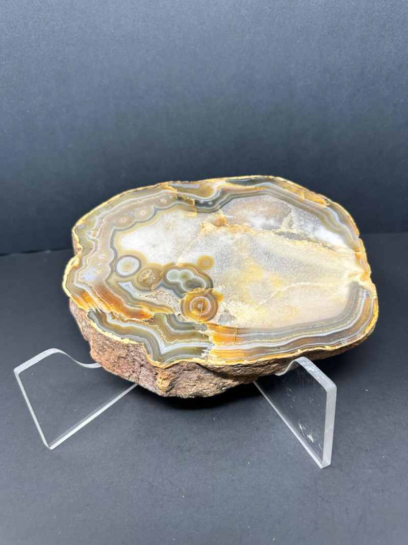 Lot # 43 - Polished Agate Slice – Multitone Banding and Natural Flow Starting Bid: $ 5.00 Bids: Bidding starts in: |