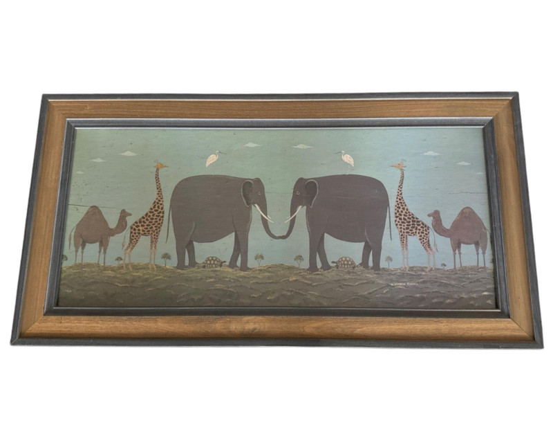 Lot # 25 - Warren Kimble “Noah’s Ark” Framed Print – Folk Art Animal Scene Starting Bid: $ 5.00 Bids: Bidding starts in: |