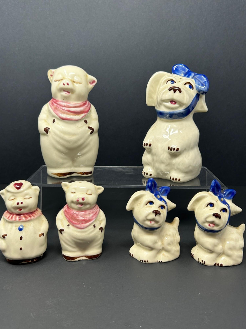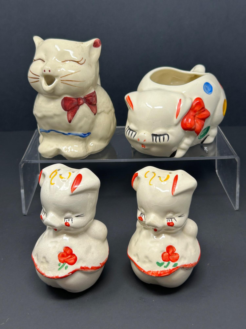 Lot # 54 - Charming Shawnee Smiley Pig & Cat Figural Creamers & Shakers Starting Bid: $ 5.00 Bids: Bidding starts in: |