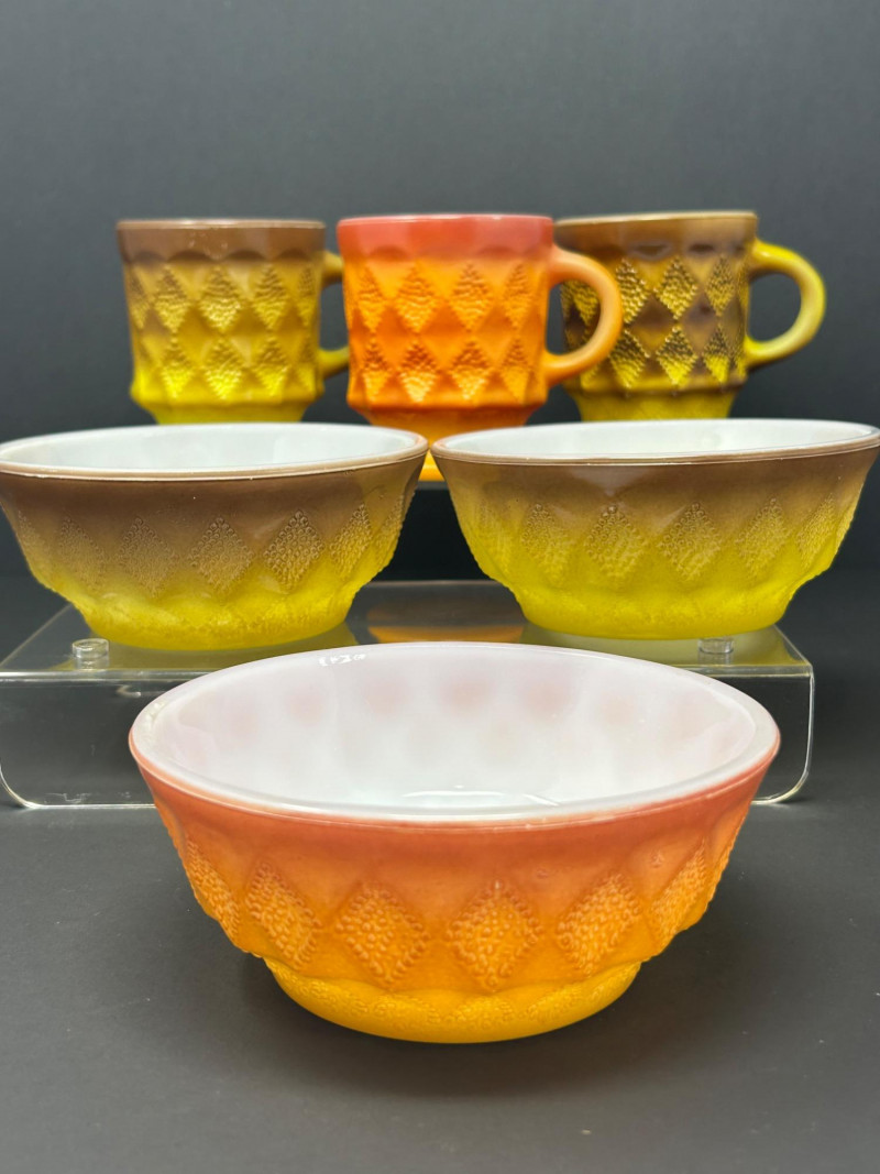 Lot # 10 - Fire King Kimberly Diamond Pattern Mugs-Five Total Starting Bid: $ 5.00 Bids: Bidding starts in: |