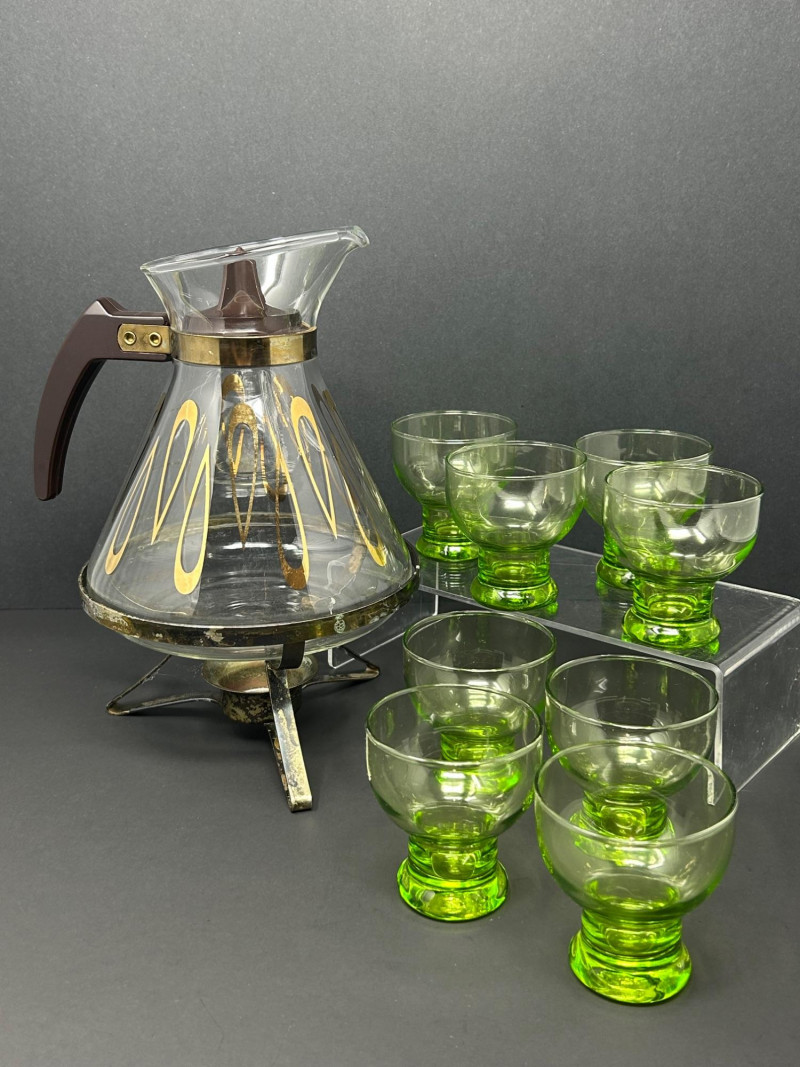 Lot # 55 - Vintage David Douglas Flameproof Coffee Server & Green Glass Cups Set Starting Bid: $ 5.00 Bids: Bidding starts in: |