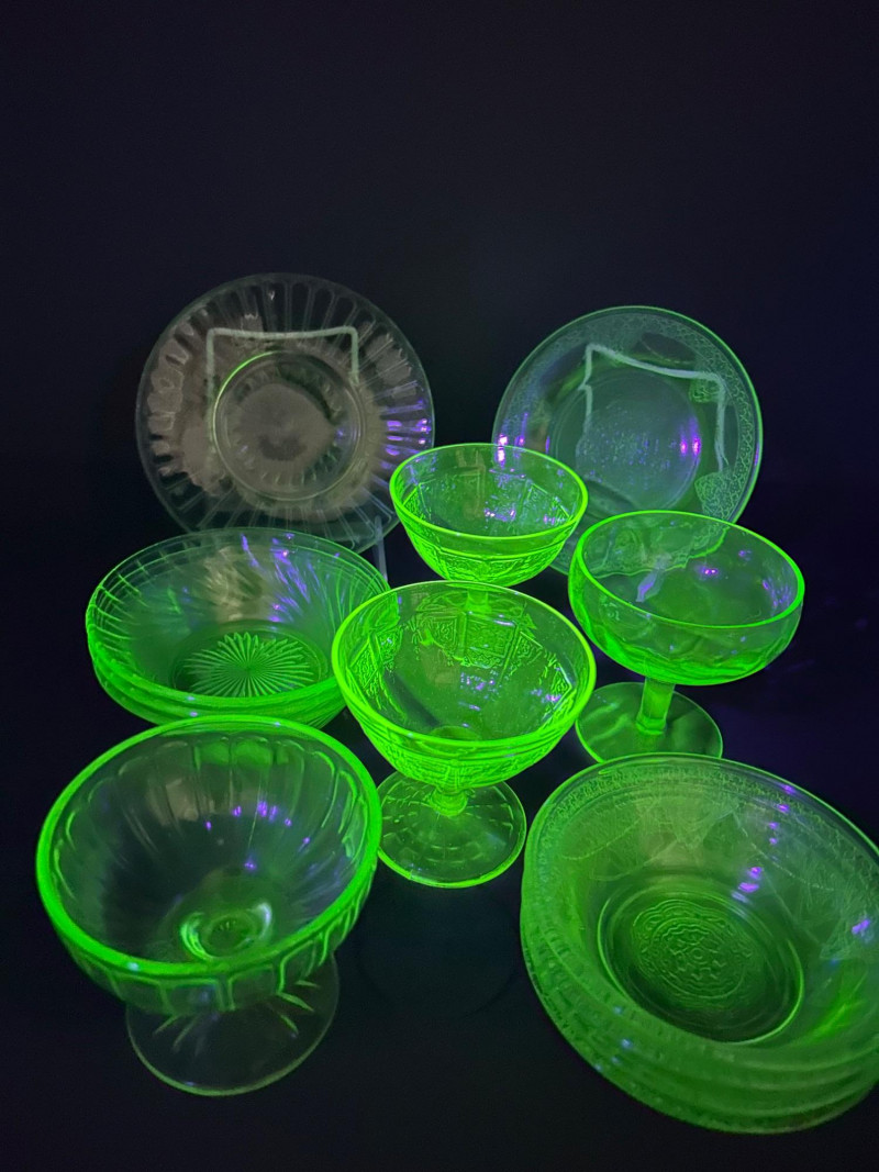 Lot # 42 - Vintage Green Uranium Glass Mixed Lot Starting Bid: $ 5.00 Bids: Bidding starts in: |