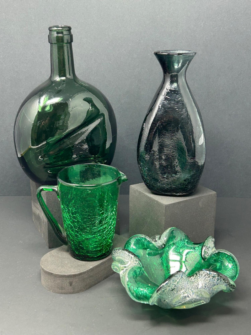 Lot # 60 - Vintage MCM Green Crackle Art Glass Lot Starting Bid: $ 5.00 Bids: Bidding starts in: |