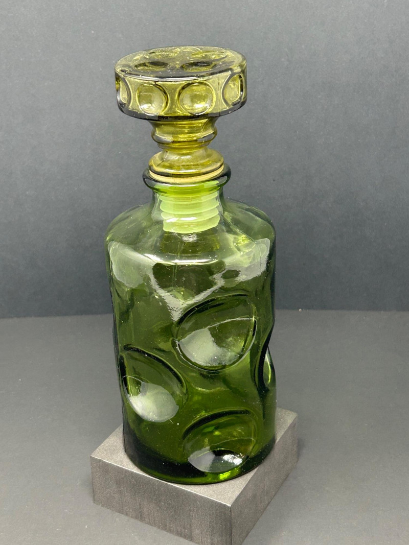 Lot # 26 - Vintage Green Thumbprint Glass Decanter with Matching Stopper Starting Bid: $ 5.00 Bids: Bidding starts in: |