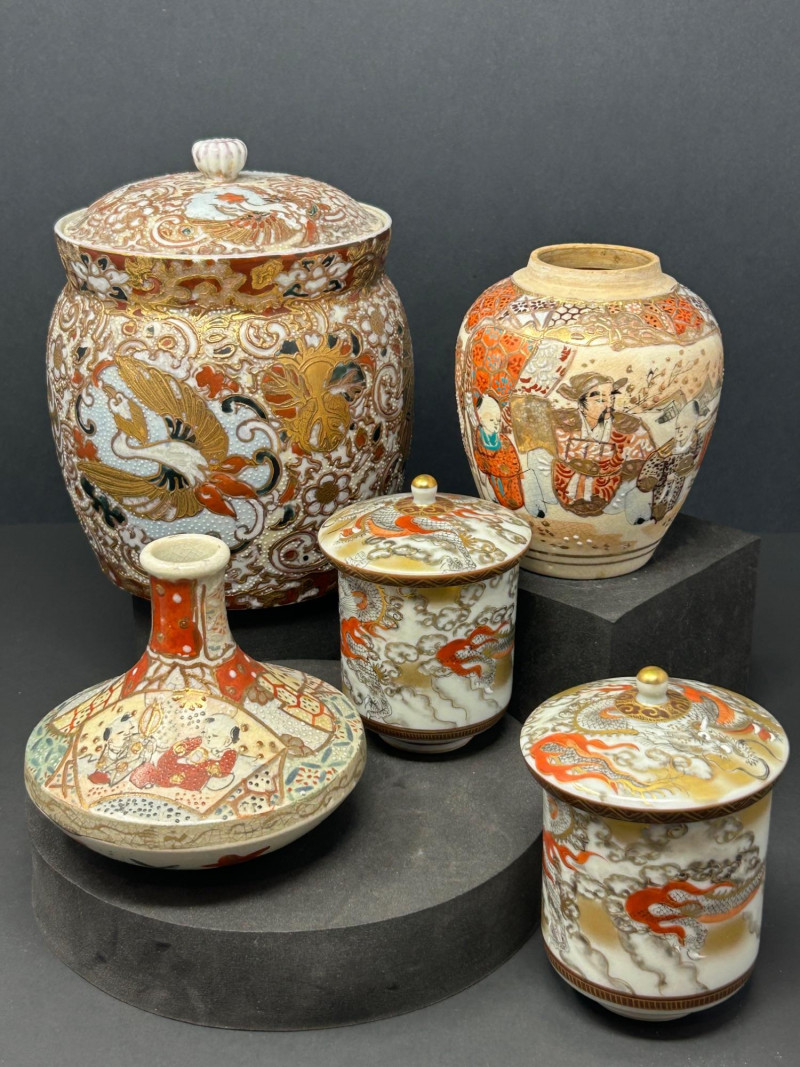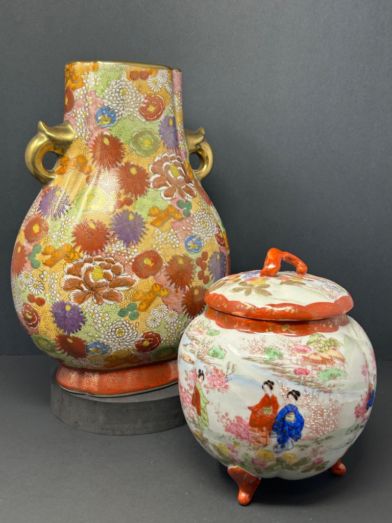 Lot # 75 - Japanese Satsuma-Style Vase & Kutani-Style Footed Ginger Jar Starting Bid: $ 5.00 Bids: Bidding starts in: |
