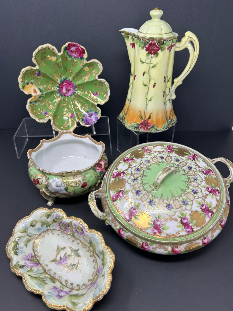 Lot # 116 - Vintage Nippon Hand-Painted Porcelain Tea & Serving Lot Starting Bid: $ 5.00 Bids: Bidding starts in: |