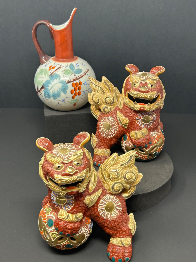 Japanese Kutani-Style Shishi Foo Dog Pair – Intricately detailed guardians with cultural and artistic significance.