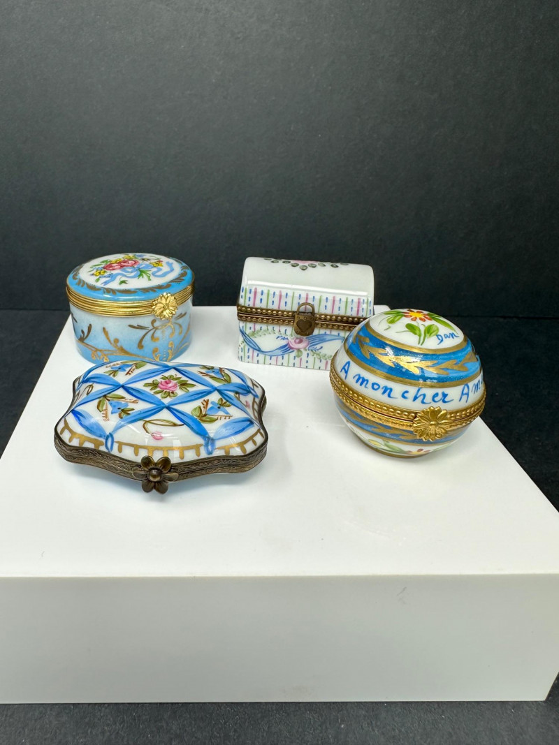 Lot # 82 - Set of 4 Limoges France Hand-Painted Porcelain Trinket Boxes Starting Bid: $ 5.00 Bids: This sale will end in: |