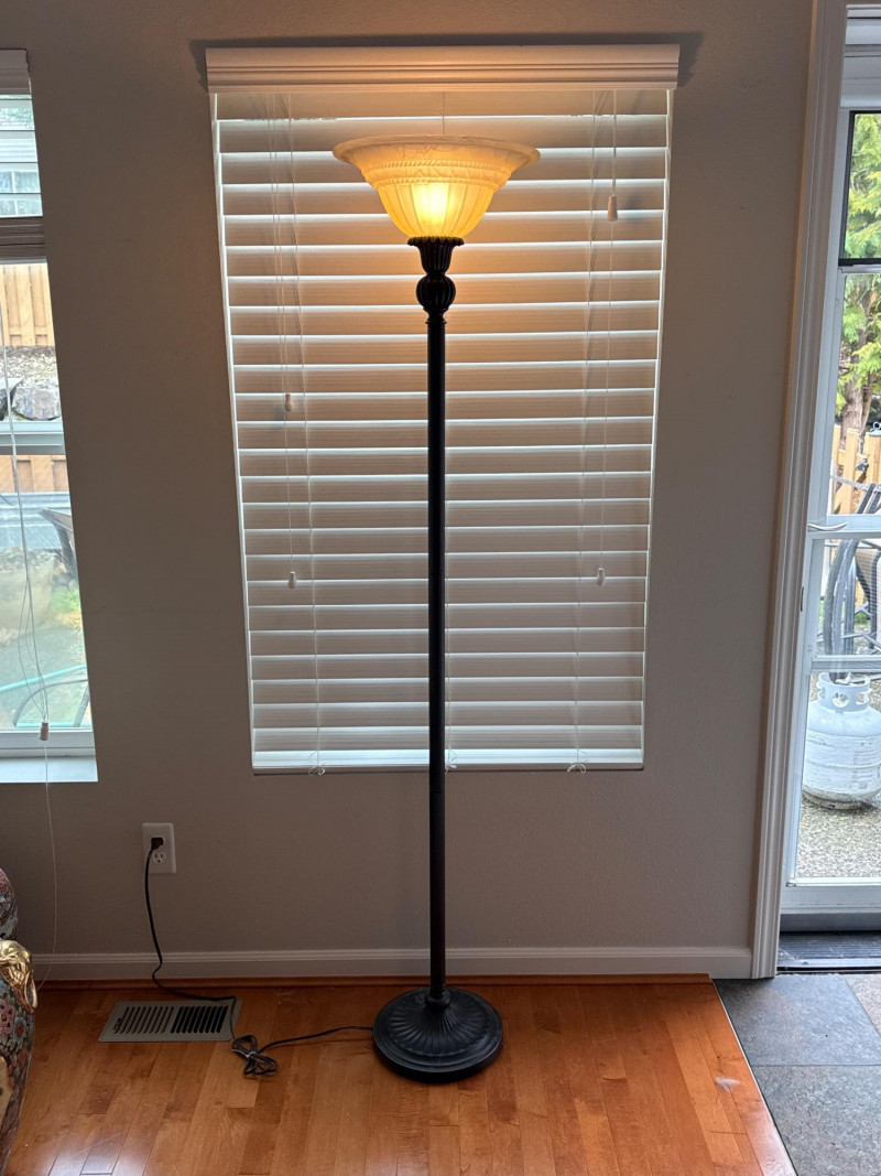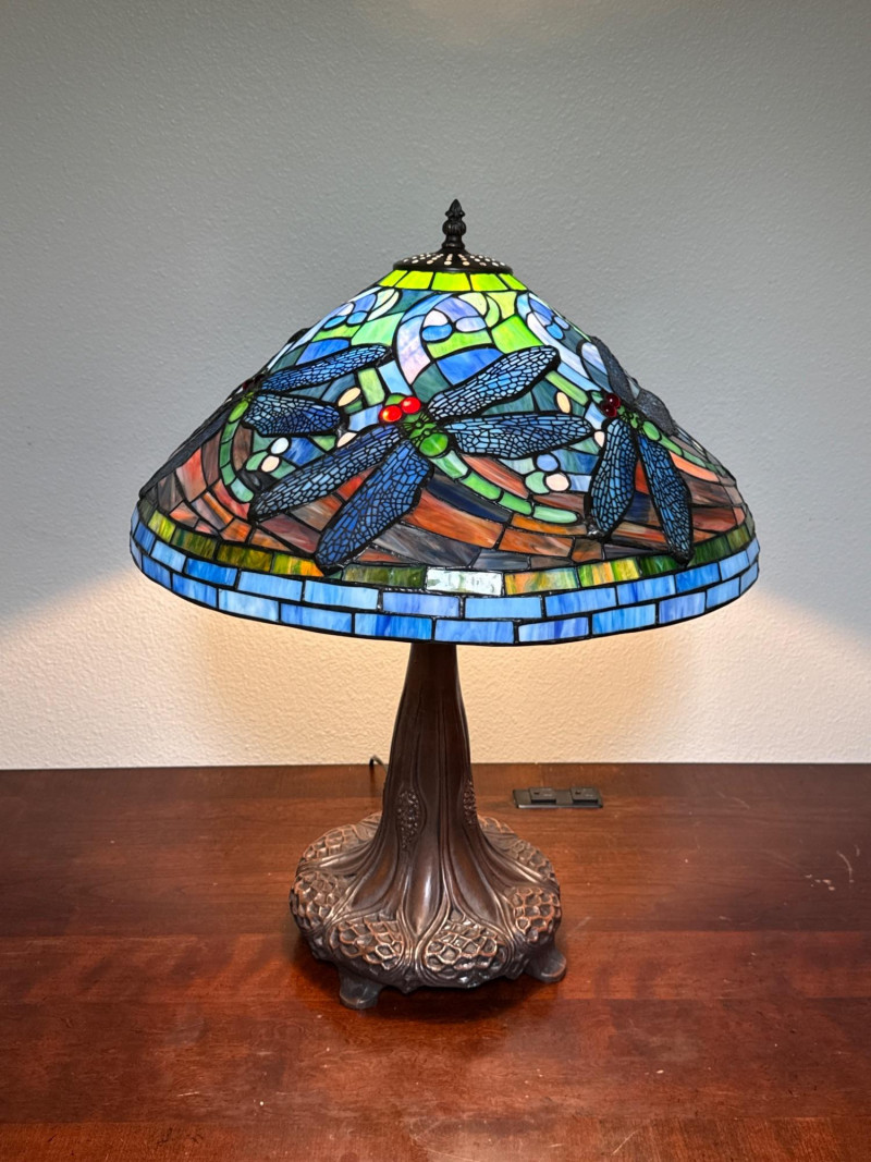 Lot # 97 - Stained Glass Dragonfly Torchiere Floor Lamp Starting Bid: $ 5.00 Bids: Bidding starts in: |
