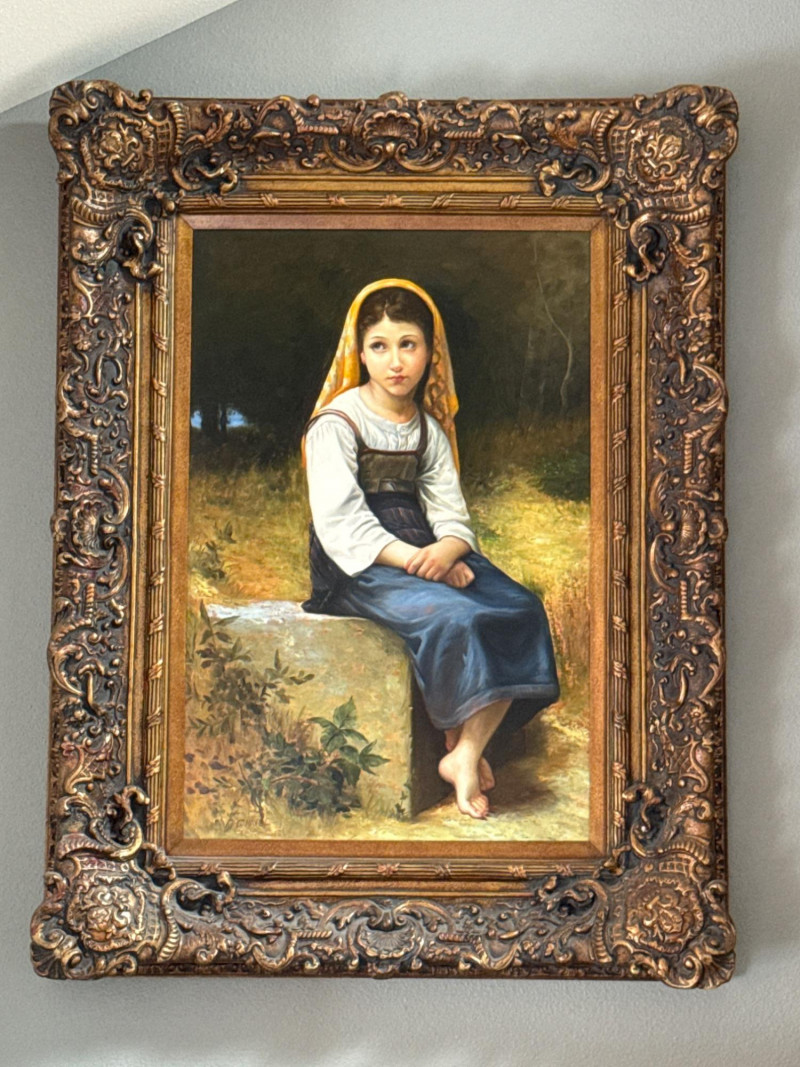 Lot # 10 - “Meditation after William-Adolphe Bouguereau” – Large Signed Canvas Starting Bid: $ 5.00 Bids: Bidding starts in: |