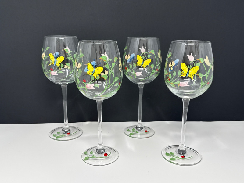 Lot # 12 - Lenox Butterfly Meadows Hand-painted Crystal Goblets- Set 4 Starting Bid: $ 5.00 Bids: Bidding starts in: |