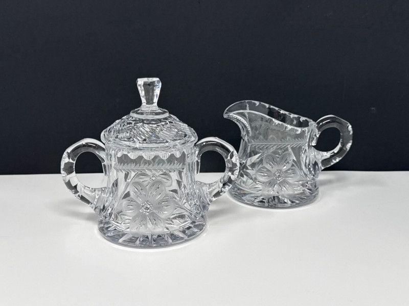Lot # 121 - Assorted Cut Crystal Glassware & Pressed Glass Pitcher Starting Bid: $ 5.00 Bids: Bidding starts in: |