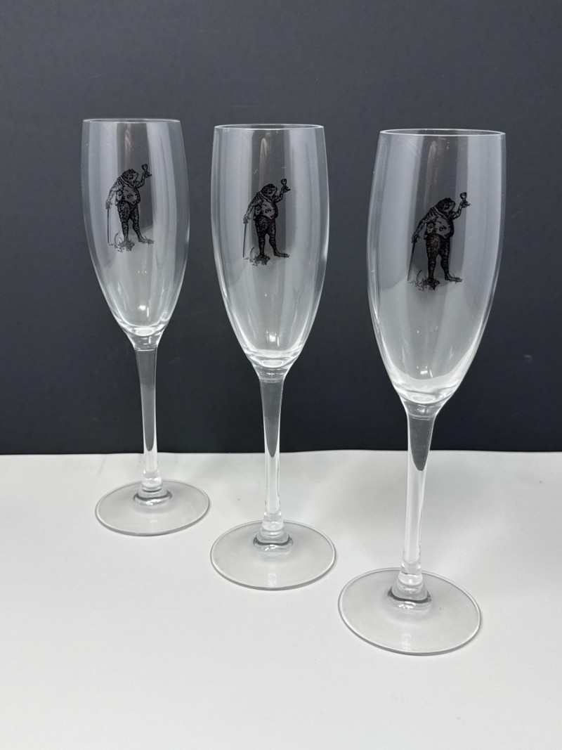 Lot # 102 - Toad Crystal Champagne Flutes- set 3 Starting Bid: $ 5.00 Bids: Bidding starts in: |