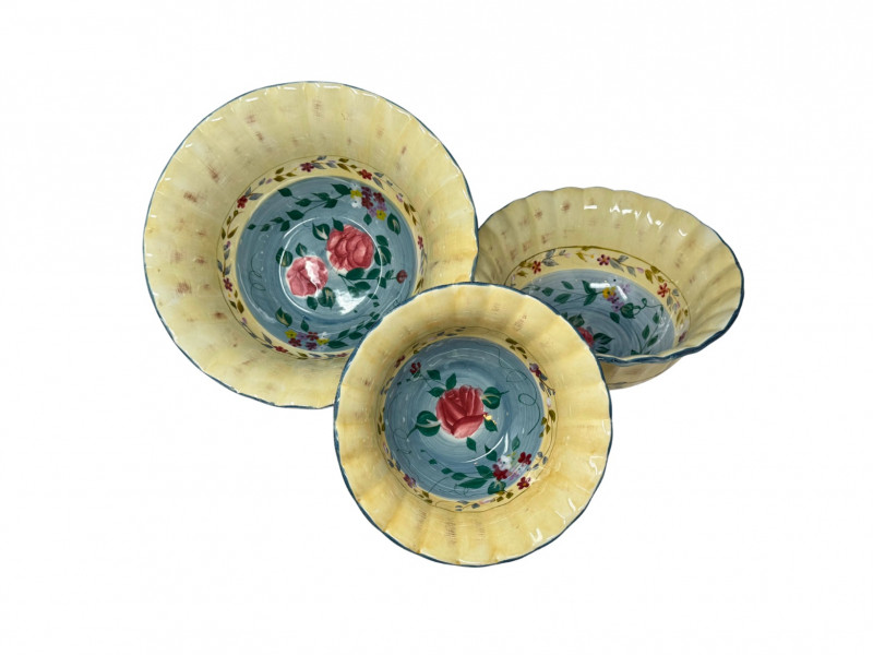 Lot # 87 - Certified International Painted Fluted Nesting Bowl Set of 3 Starting Bid: $ 5.00 Bids: Bidding starts in: |