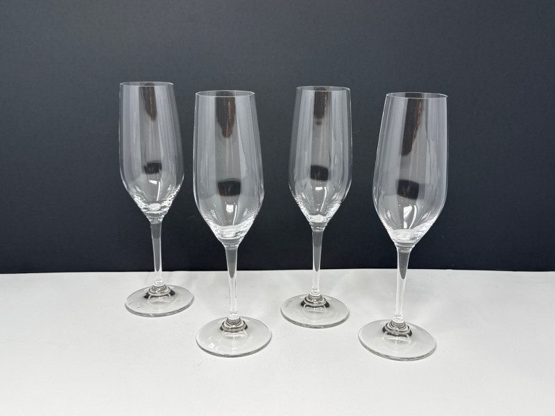Lot # 106 - Reidel Crystal Champagne Flutes- set 4 Starting Bid: $ 5.00 Bids: Bidding starts in: |