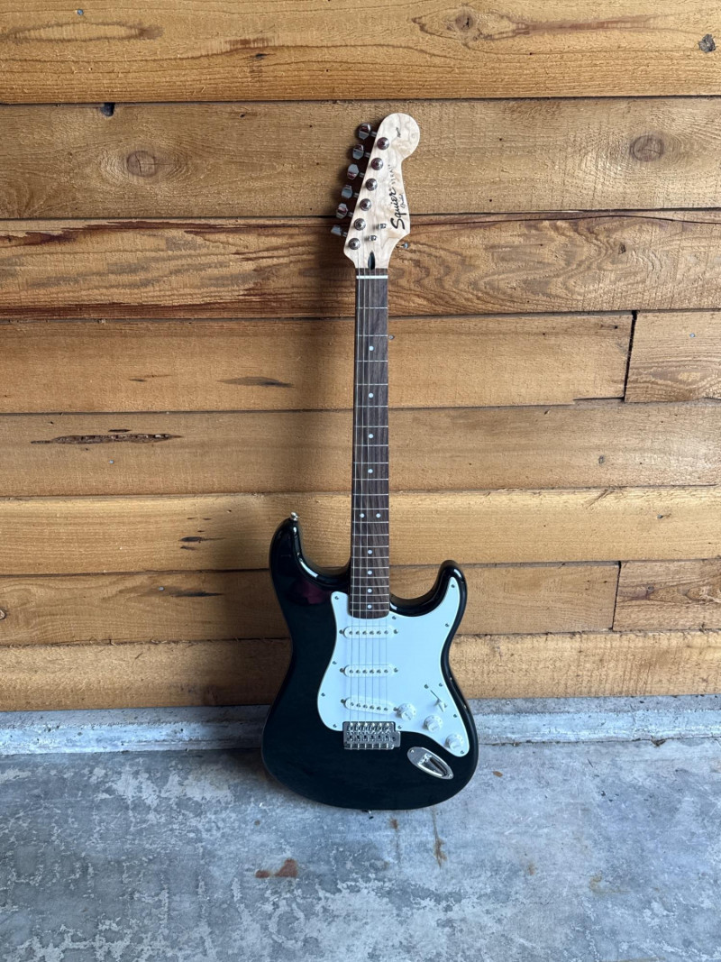 Lot # 39 - Fender Squier Strat 6-String Black & White Electric Bass Starting Bid: $ 5.00 Bids: Bidding starts in: |