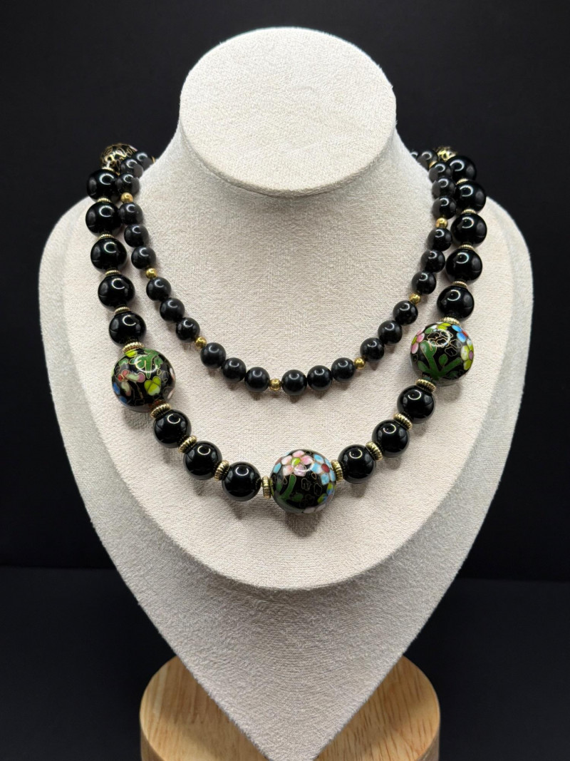 Lot # 44 - Vintage Black Beaded & Cloisonné Necklace Pair Starting Bid: $ 5.00 Bids: Bidding starts in: |