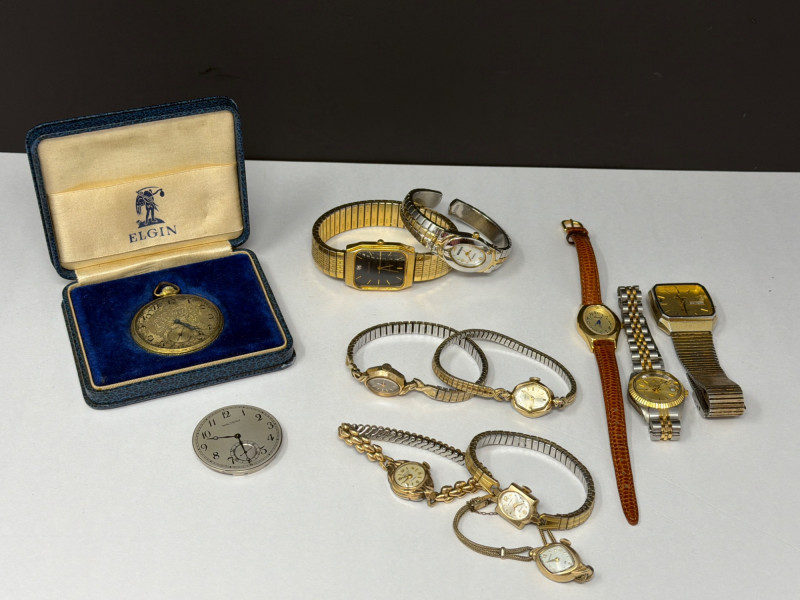 Lot # 72 - Vintage Gold Toned Watches- Elgin, Waltham, Hamilton & more Starting Bid: $ 5.00 Bids: Bidding starts in: |