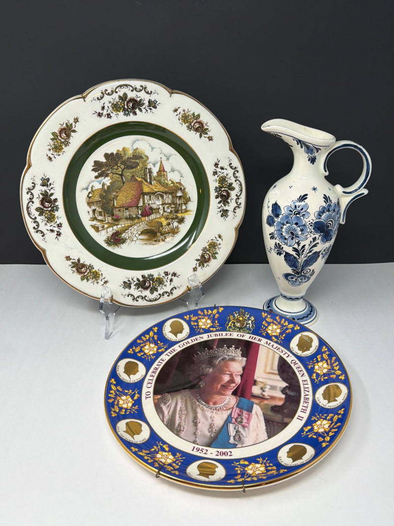 Lot # 91 - Hand Painted Delft Pitcher & English Plates Starting Bid: $ 5.00 Bids: Bidding starts in: |